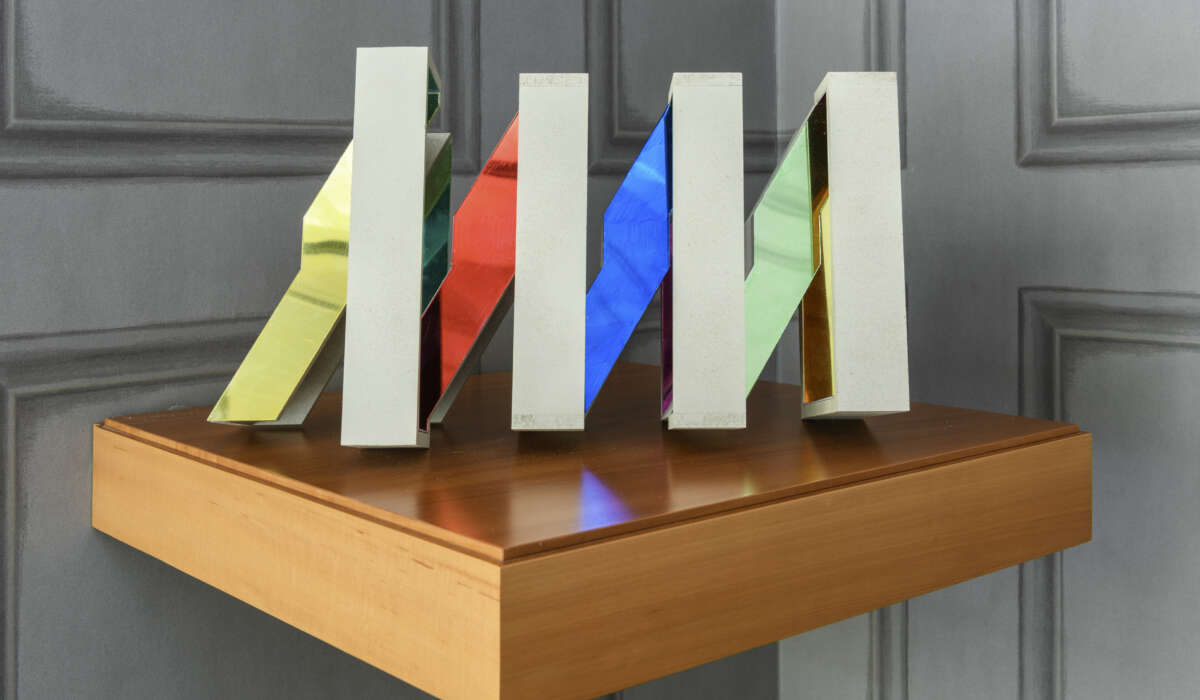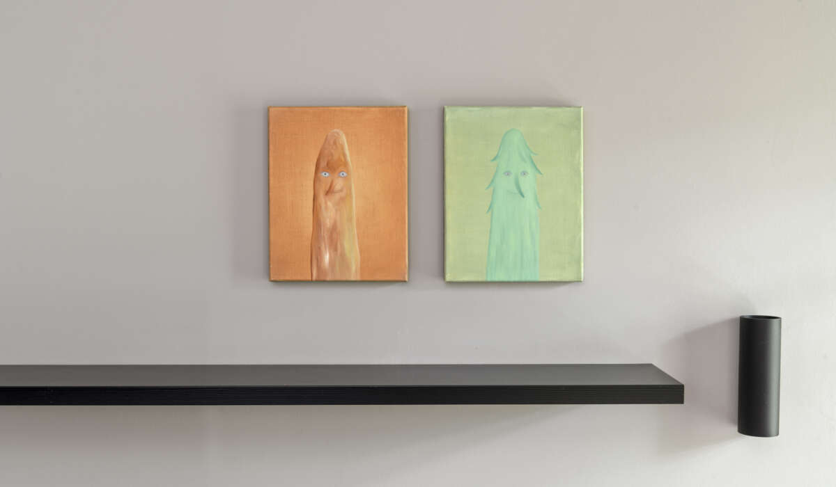 Im Kontrast zu ihren Gemälden stehen Brosinskis Skulpturen und Keramiken: Diese sind figurativ und wirken beinahe wie Bewohner der reduzierten Bildwelten.