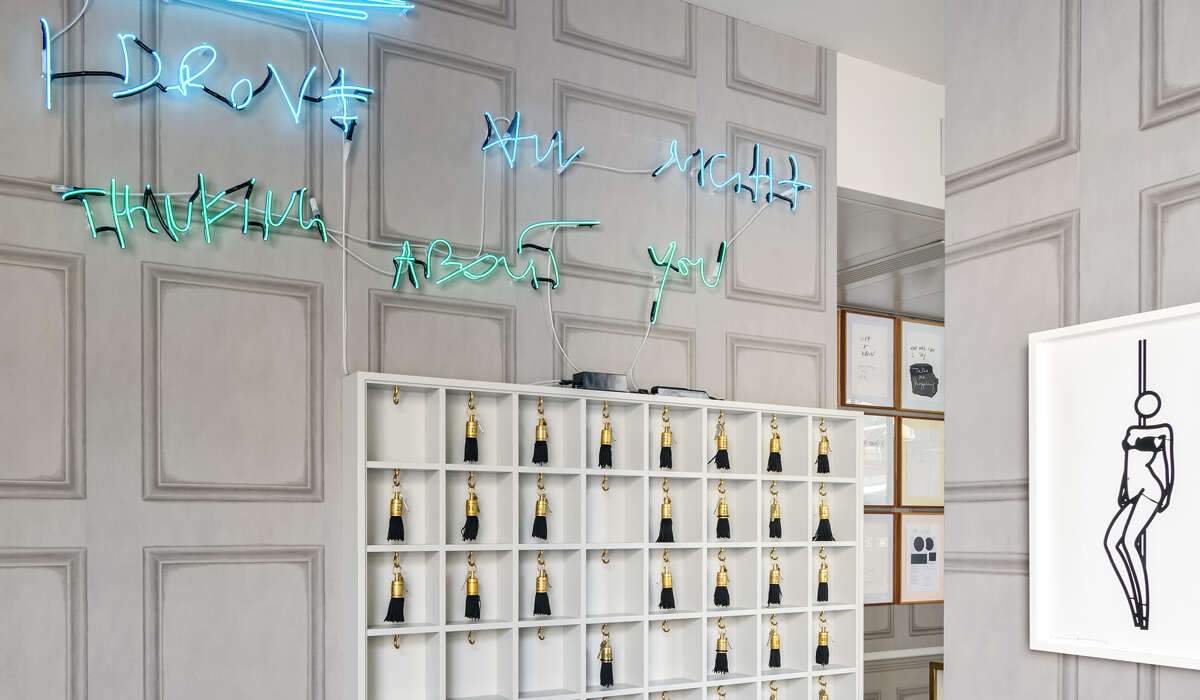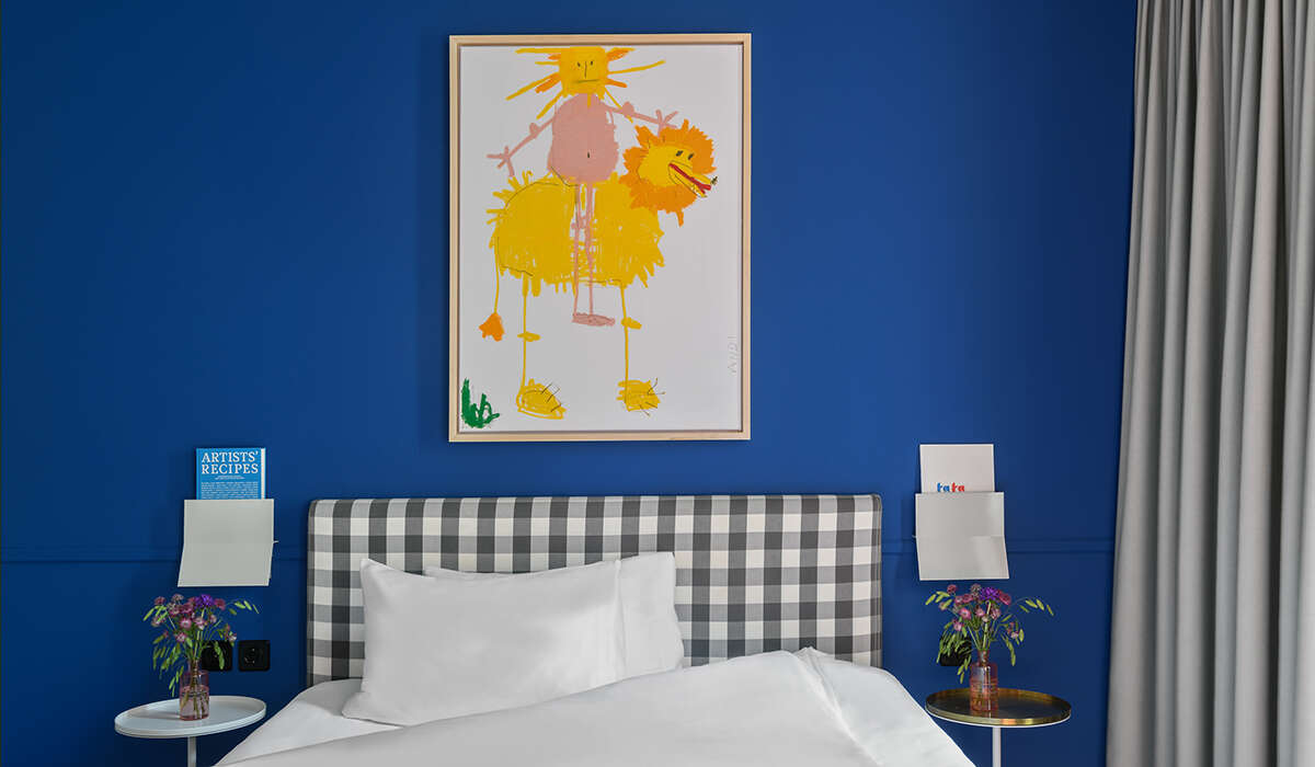 Die Ausstellung macht nicht in den öffentlich zugänglichen Räumen wie der „Wunderkammer“ Halt, sondern findet mit dem Jenny-Brosinski-Zimmer als Dauerinstallation Eingang ins Hotel.