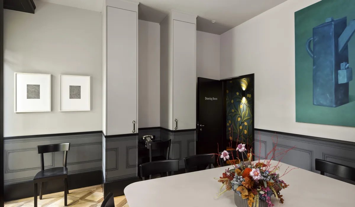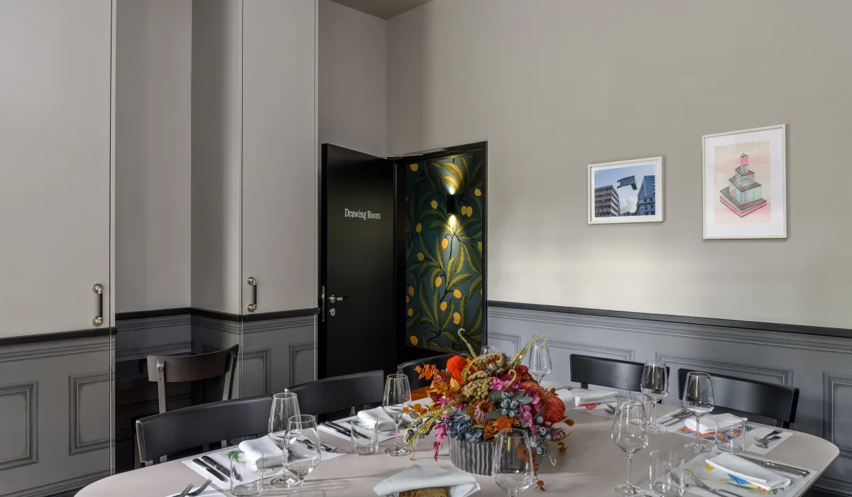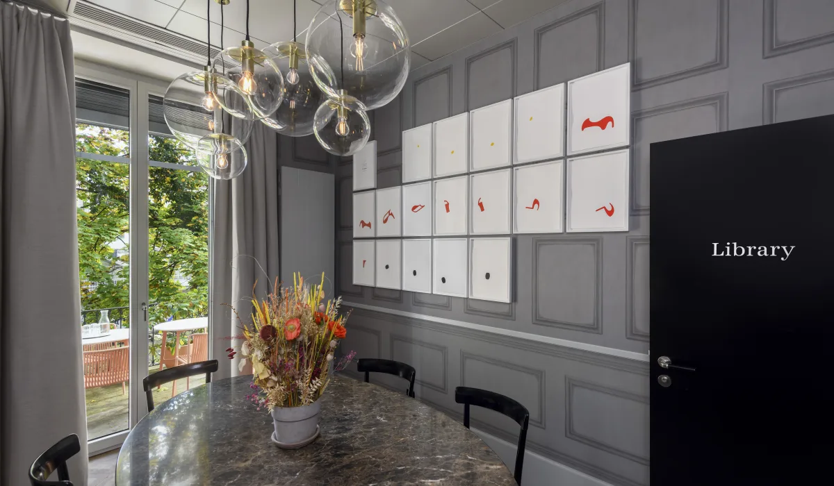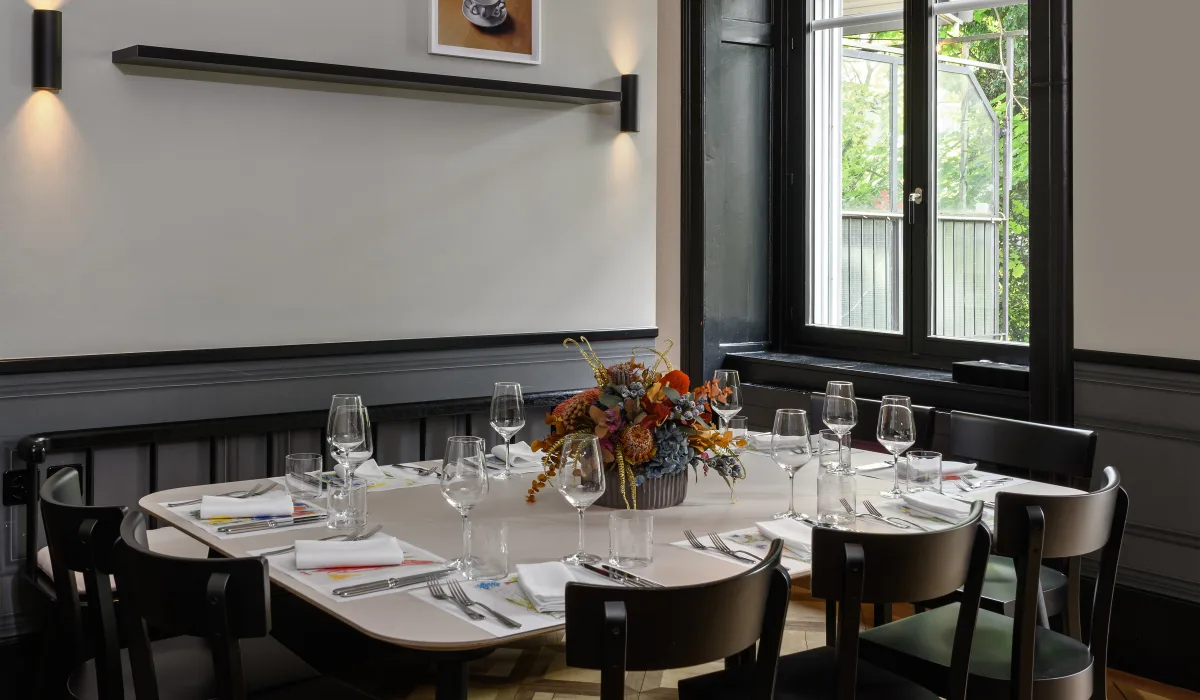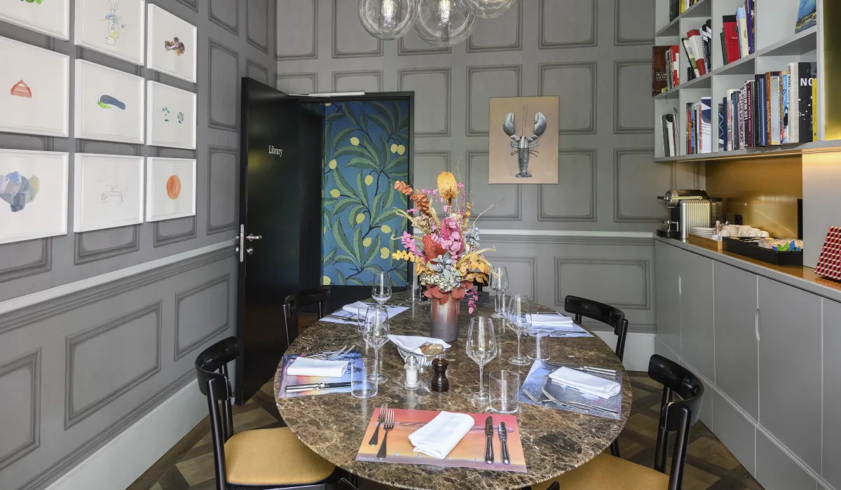 Mit viel Liebe zum Detail wurden die Library und der Drawing Room gestaltet und eingerichtet. Zeitlose und hochwertige Möbel wie ein ovaler Saarinen Marmor Tisch, Moser Stühle von Horgen Glarus, zeitgenössische Kunst und weitere Design Elemente schaffen ein einzigartiges Ambiente. Gerne reservieren wir Ihnen die Bibliothek oder den Drawing Room inklusive Balkon für Ihr Business Meeting, Private-Lunch oder Dinner (bis zu 10 Personen).