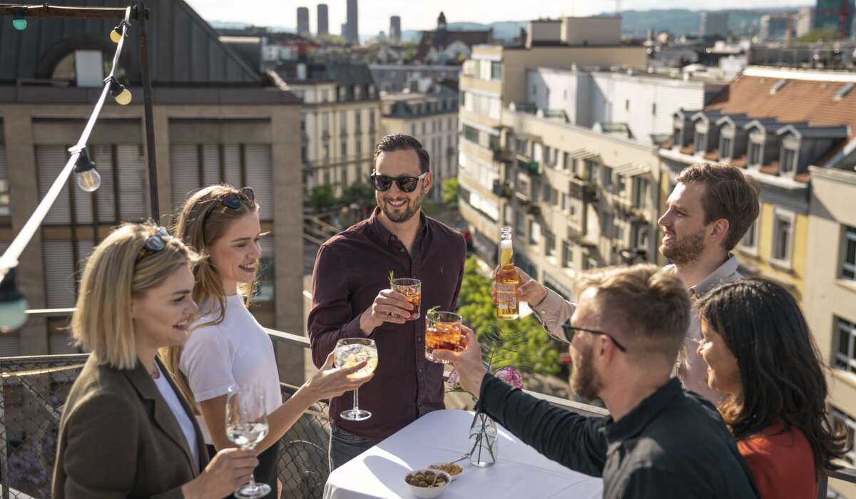 Die Dachterrasse kann exklusiv für Ihren Event gemietet werden. Geniessen Sie einen Apéro, ein sommerliches Dinner, erfrischende Drinks und die 360° Aussicht über die Dächer der Stadt.