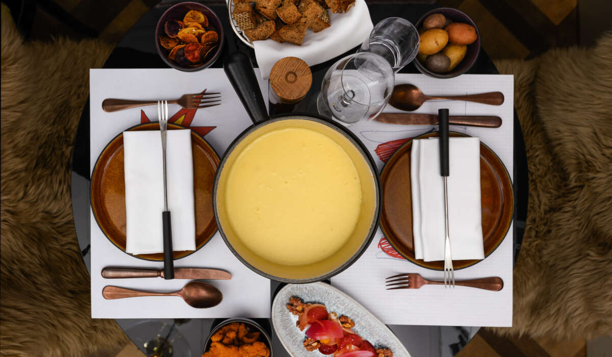 We look forward to welcoming you again in the artfully designed fondue Châlet called “Helvti-Chäschtli” from 28.10.25 – 31.1.26.