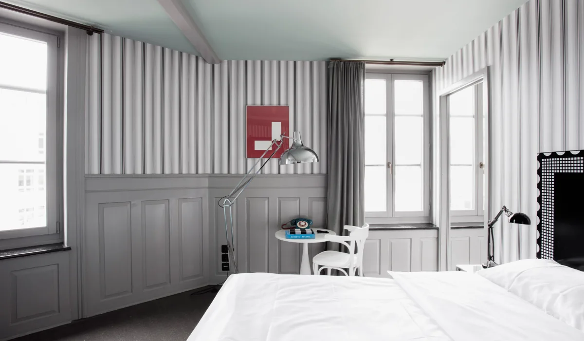 Die stilvollen Zimmer bieten alles, was es für einen komfortablen Stadtaufenthalt braucht. Ein charmantes, wohnliches Ambiente mit einzigartiger, urbaner Aussicht auf die Sihl und die Stadt.